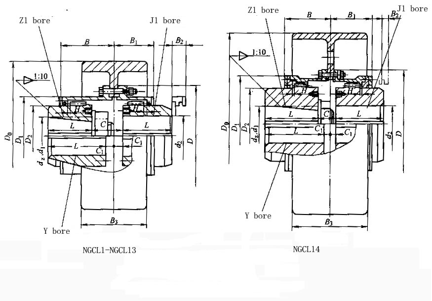 NGCLZ type - with brake wheel connected intermediate shaft type;