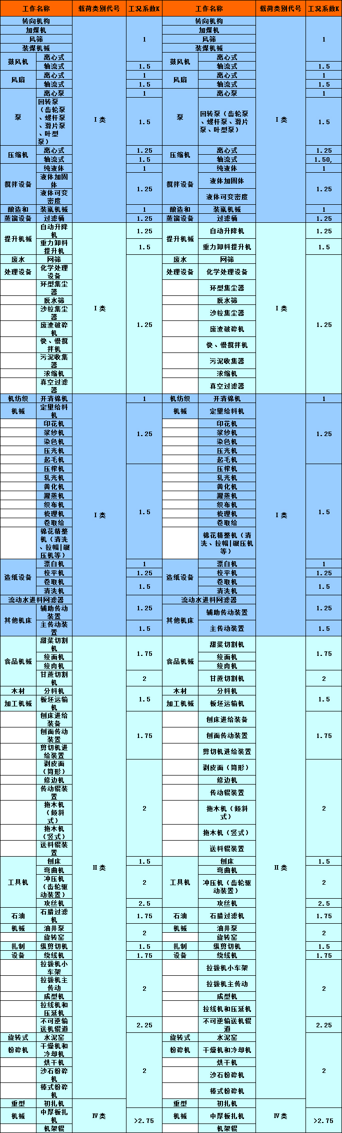 b.上表所列K值,其動力機為電動機和透平,若為其他動力機應考慮動力機系數(shù)Kw